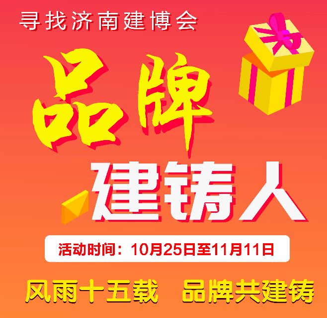 2004年 济南信展展览有限公司成立 济南建博会筹备举办 2005年 首届济南建博会开幕 时至今日 在新中国成立70周年之际 济南建博会也走过了15载的 风雨征程 十五年里 我们见证了 北京奥运会上我国运动员大放异彩 汶川地震后中国人民带着希望涅槃重生 中国高铁从“异想天开”成为“世界传奇” 70周年阅兵式上百将受阅宏伟壮丽 70年栉风沐雨 70年共创伟业 在这美好的新时代里 在中国品牌迅猛发展的狂热浪潮下 济南建博会品牌发展也进入了 全新的跨越 2020第26届济南建博会 将移师山东国际会展中心 于2020年4月16-18日盛大开幕 规模体量全面升级 新时代 新起点 新未来 济南建博会愿承载 引领中国北方大家居建装行业 高质量发展的使命奋勇前行 十五年的风雨同舟 所有亲身参与过 济南建博会的同仁 都是我们倾心寻觅的 品牌建铸人! 在济南建博会举办 15周年之际 组委会特发起 “寻找济南建博会 品牌建铸人”活动 诚邀您参与其中, 共筑行业梦想! 不限行业、不限人群,所有人均可参与! 一等奖:3名,华为手环3 二等奖:4名,豪华车载空气净化器 三等奖:20名,智能温度显示保温杯 幸运奖:20名,高档商务笔记本 (为提高中奖几率,获奖者仅在发我们截图的编号中抽取,采用系统随机抽奖,且会把抽奖视频公布在此微信公众号11月12日推文中) 活动转发时间:10月25日至11月11日下午3点 活动抽奖时间:11月11日下午4点 活动奖项公布:11月12日下午5点微信公众号“jinanjbh”推文 奖品邮寄时间:11月12日-14日陆续寄出 点击下方阅读原文也可直接进入活动链接参与活动,礼品丰厚,中奖几率超高,惊喜大奖等着您!